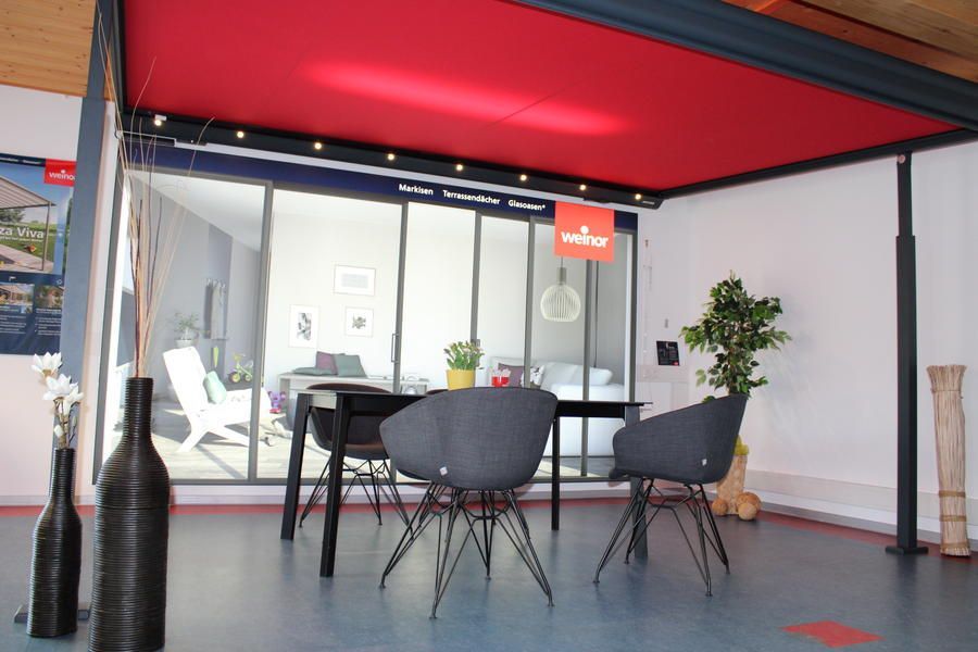 Folgende Produkte sind in unserem Showroom ausgestellt: Weinor und Varisol Markisen, Weinor Lamellendach Artares, Weinor Pergolamarkise Plaza Viva und Pergotex II, Pratic Lamellendach BRERA, Weinor Terrassendach Terrazza / Terrazza Pure (auch als Kaltwintergarten „Glasoase“), sowie Insektenschutz von Neher.